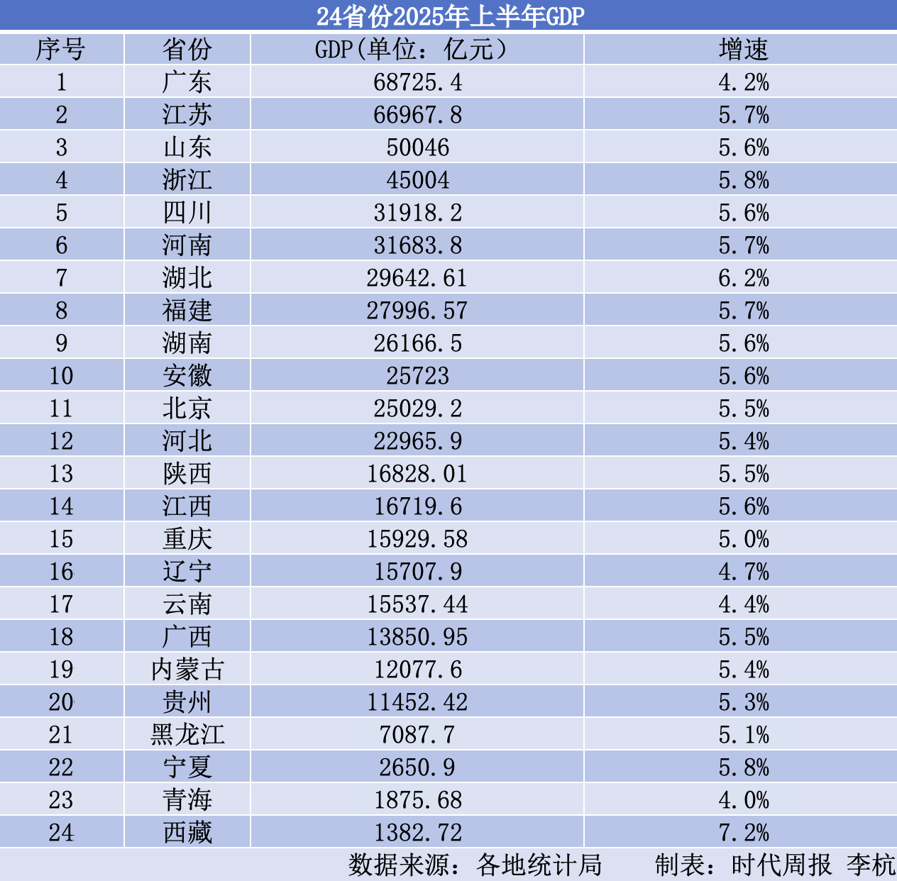 各地2025年上半年GDP数据陆续公布。截至发稿,共有24个省(区、市)公布相关数据。